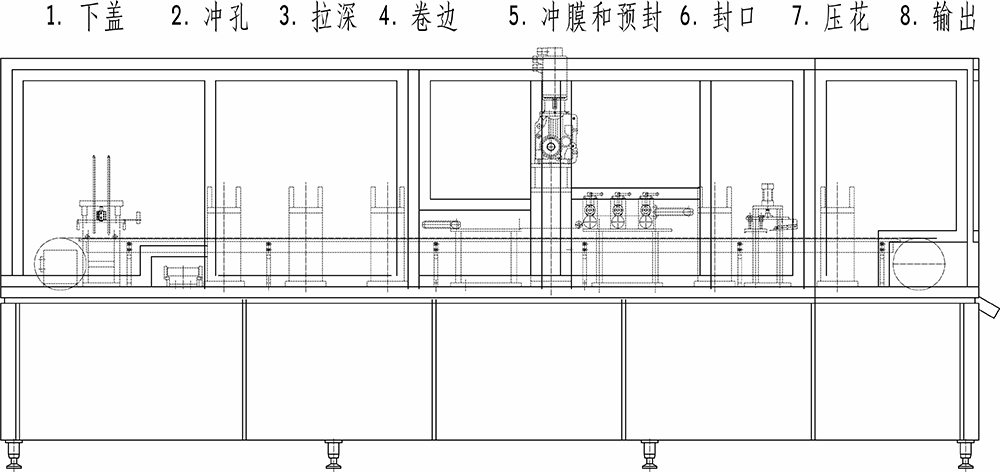 SKM-A系列鋁箔易撕蓋生產設備 該系列設備可用來生產202-603#易撕蓋,尤其適合于202-401#小型的鋁易撕蓋和異形易撕蓋。自動完成下蓋、沖孔、拉深、卷邊、沖鋁箔預封、封口、壓花、輸出等功能。獨立伺服控制的各功能模塊,可單獨調節參數,并可實現高速響應及同步動作。 可根據用戶需求,設計新機型。 圖片,參數僅作參考,如有改動,恕不另行通知。